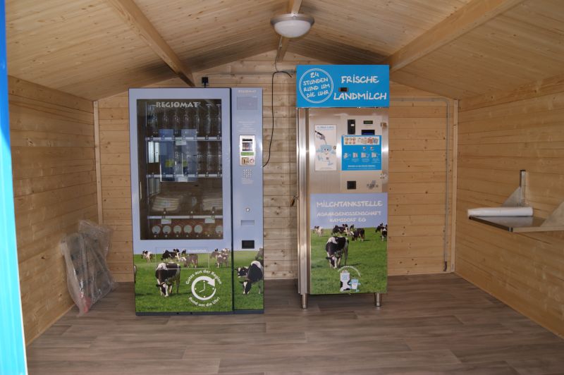 Milchtankstelle ist 24 h geöffnet Weiterhin gibt es einen Regiomaten mit Milchflaschen, Wurstgläsern, Butter und Rostbratwürsten (gebrüht)